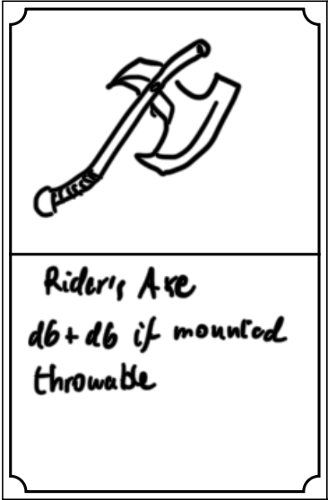 - The GM can prepare item cards in advance and hand them out as required, rather than having Players slowly write down all relevant information.
